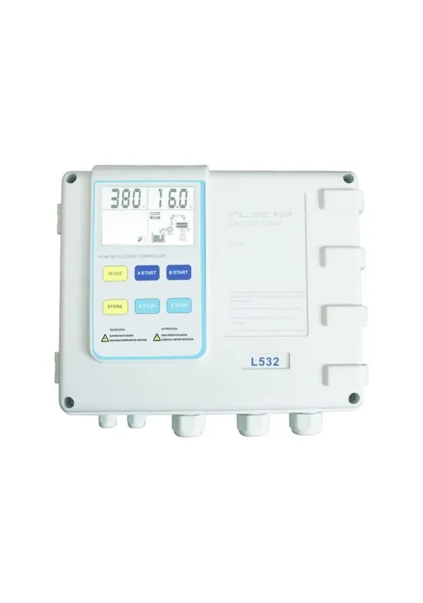 Akıllı kontrol ünitesi TOU-S02, 0.75KW-4KW (1HP-5.5HP) aralığındaki direk kalkışlı üç fazlı ikili hidrofor pompaların, derinkuyu pompalarının ve pis su pompalarının kontrolü ve koruması amaçlı kullanılan kolay bir kullanıma sahip programlanabilir bir kontrol ünitesidir.TOU-S02 bir çok farklı elektriksel bağlantılara uygun bir paneldir. Diğer ON/OFF panolardan farklı olarak en önemli özelliği herhangi bir prob veya elektroda gerek duymaksızın çok hassas bir kuru çalışma koruması vardır.Temel Özellikler:Farklı uygulamalar için dip sviç ayarı yapılmalıdır.Herhangi bir su besleme uygulamasında flatör veya seviye probları ile seviye kontrolüHerhangi bir su besleme uygulamasında basınç sensörü ile basınç kontrolüDrenaj uygulamasında flatör veya seviye probları ile seviye kontrolüİki pompa kontrolüOtomatik sıralı çalıştırmaTüm korumalar hangi pompa çalışırsa çalışsın o pompa için devrededir.İstenilirse o an çalışmayan pompa direk devreye alınır.Su olmaması durumunda herhangi bir elektrod, flatör veya prob olmaksızın otomatik olarak pompaları kuru çalışmaya karşı korur.Otomatik / Manual mode anahtarıBir çok hataya karşı pompaların otomatik olarak korunmasıDinamik LCD ekranı sayesinde tüm bilgilerin her an görülebiliyor olmasıPompaların toplam çalışma zamanının gösterilmesiPompaların son 5 hatasının gösterilmesiUzun süreli çalışmama durumlarında pompaların bloke olmasına karşı kısa süreli devreye almaRs 485 bağlantısıFarklı seviyelere göre pompaların devreye alınıp çıkarılmasıTOU-S02 modeli bir pompanın çalıştırılması ve kontrolünün söz konusu olduğu tüm durumlarda kullanıma uygun bir kontrol panosudur.